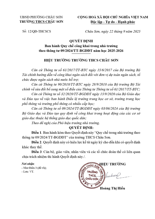 • Công khai Quyết định công khai theo thông tư 09