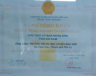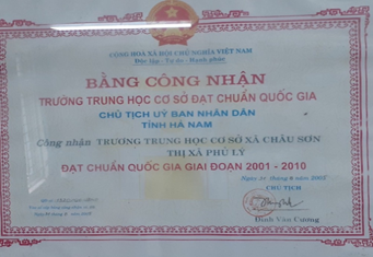 – Năm học 2015-2016 nhà trường được nhận Bằng khen của UBND tỉnh Hà Nam.