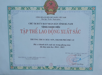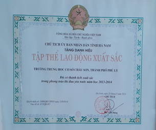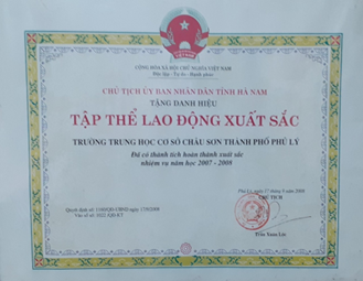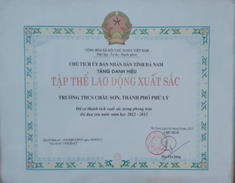 – Năm học 2013-2014 nhà trường được nhận Bằng khen của UBND tỉnh Hà Nam.
