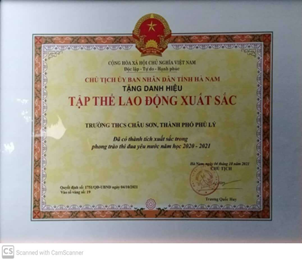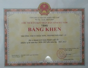 – Năm học 2021-2022 nhà trường được nhận Bằng khen của UBND tỉnh Hà Nam.