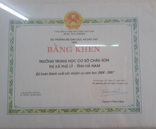 – Năm học 2006-2007 nhà trường được nhận Bằng khen của Bộ GD&ĐT