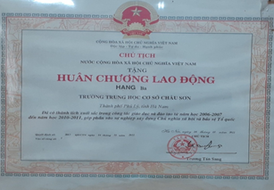 – Năm học 2011-2012 nhà trường được tặng thưởng “Huân chương lao động hạng Ba”.