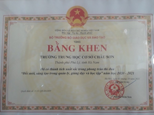 – Năm học 2020-2021 nhà trường được nhận Bằng khen của Bộ GD&ĐT.
