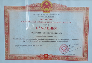 – Năm học 2019-2020 nhà trường được nhận Bằng khen của Chính phủ.