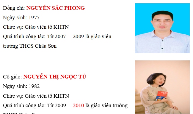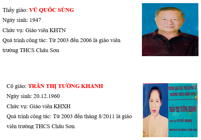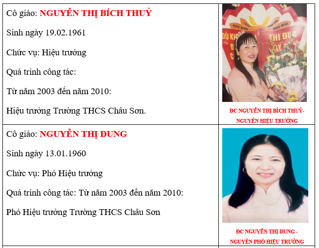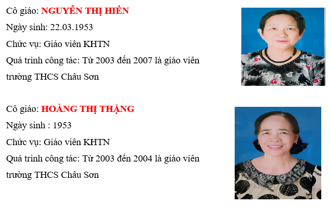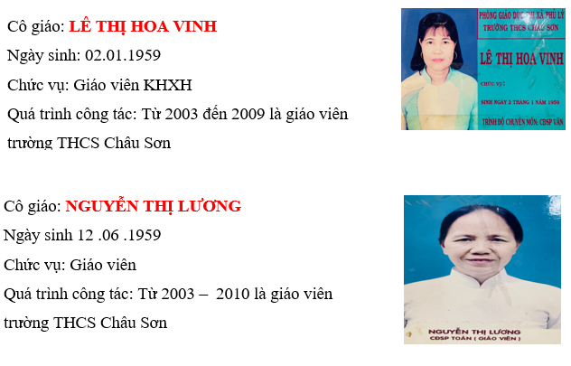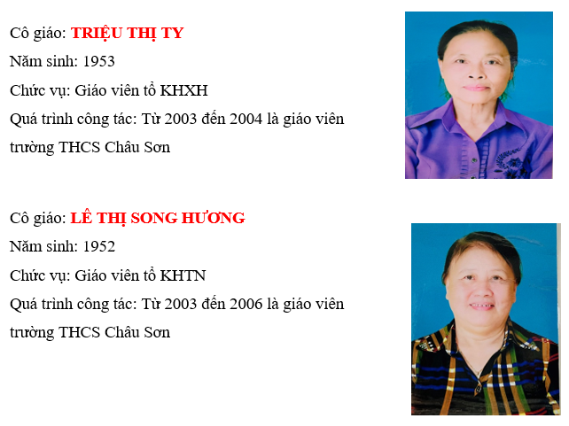 CÁC THẾ HỆ NHÀ GIÁO ĐÃ CÔNG TÁC TẠI TRƯỜNG THCS CHÂU SƠN