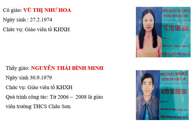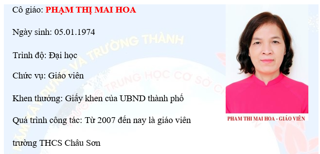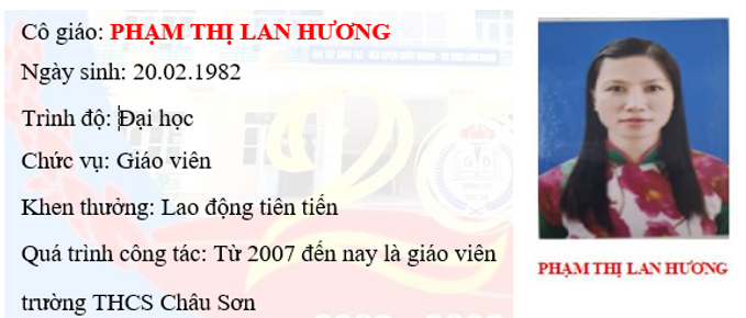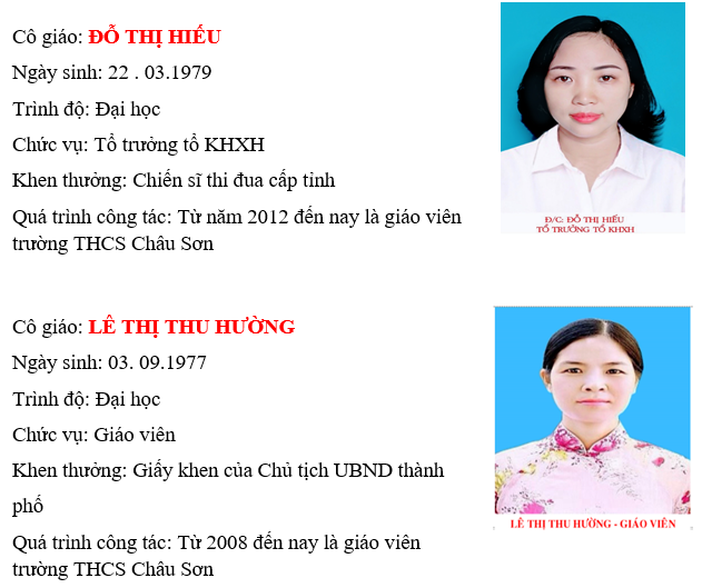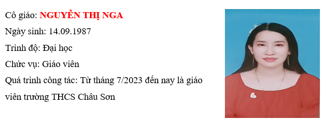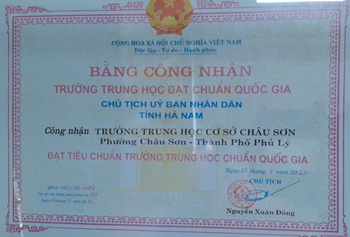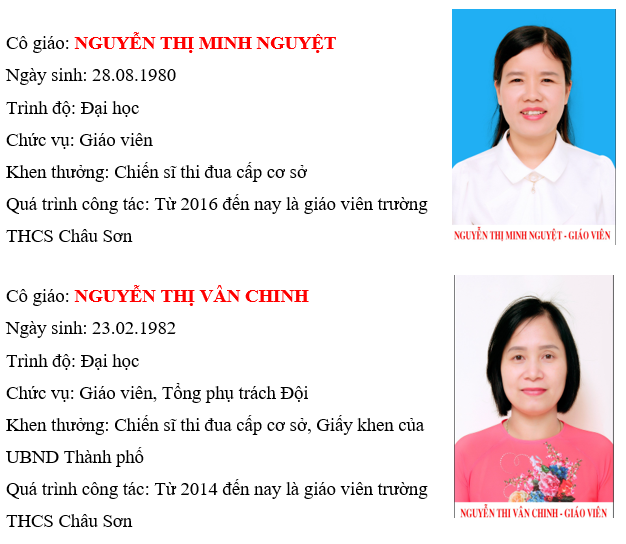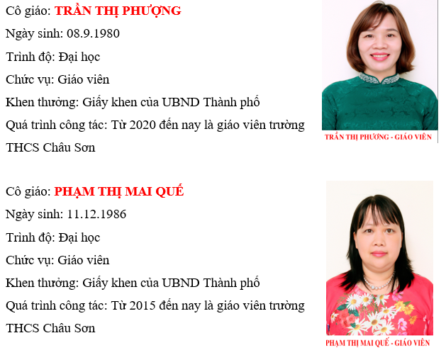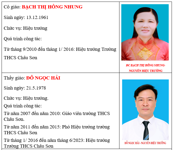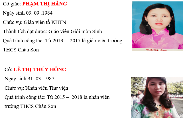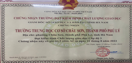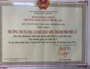 Tên trường: Trung học cơ sở Châu Sơn, phường Châu Sơn, tỉnh Ninh Bình