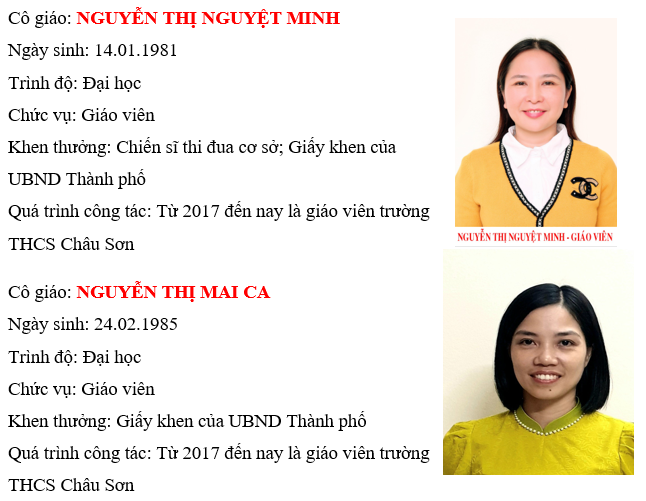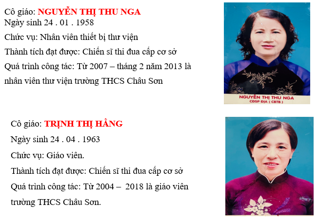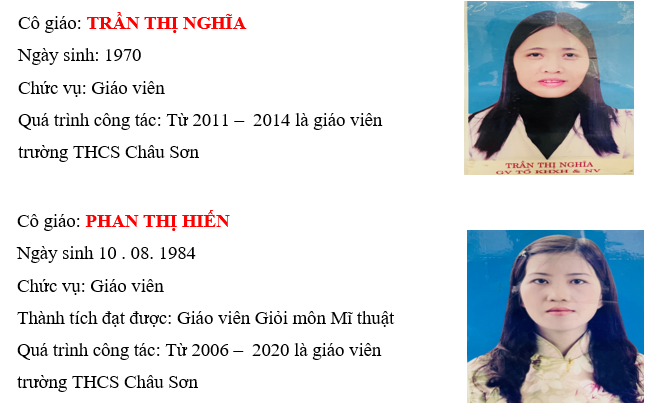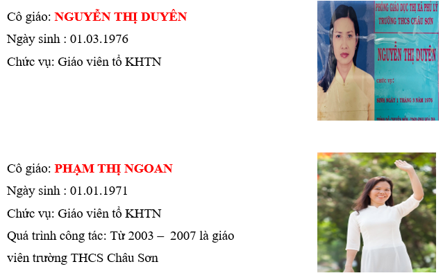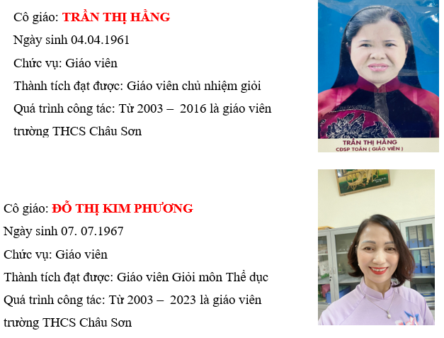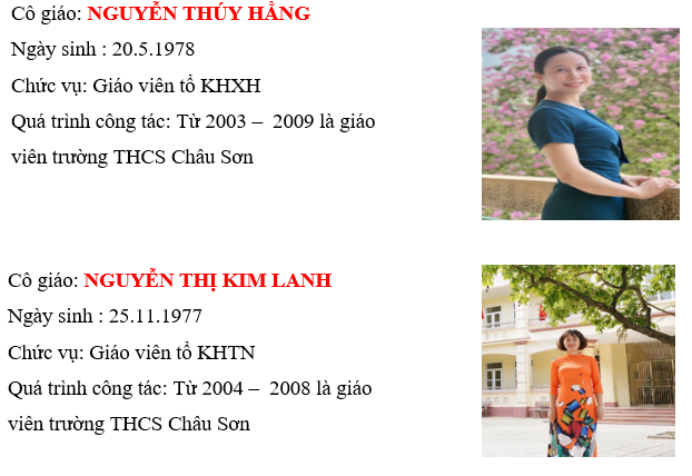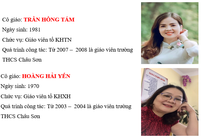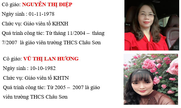 CÁC THẾ HỆ NHÀ GIÁO ĐANG CÔNG TÁC TẠI TRƯỜNG THCS CHÂU SƠN