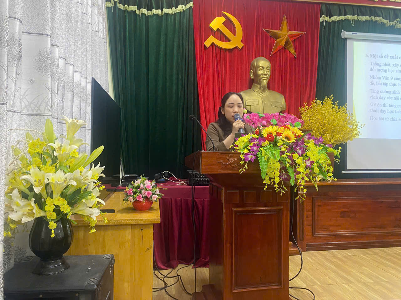 Tại buổi sinh hoạt, cô Đỗ Thị Hiếu – Tổ trưởng chuyên môn KHXH đã trình bày báo cáo kinh nghiệm ôn thi, chia sẻ định hướng ôn tập và các giải pháp nâng cao chất lượng dạy – học theo cấu trúc đề thi mới.