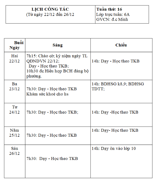 Lịch công tác tuần 16