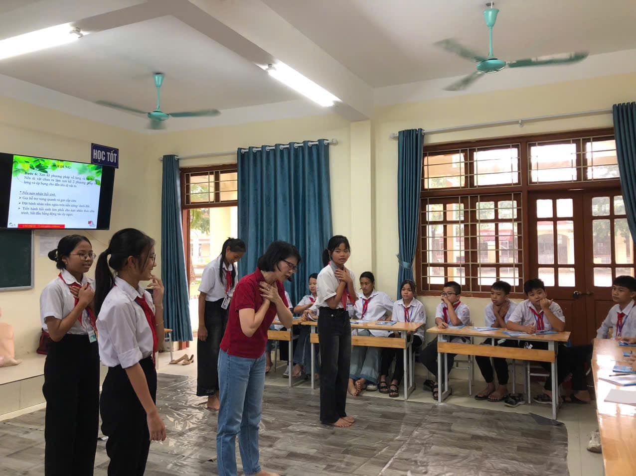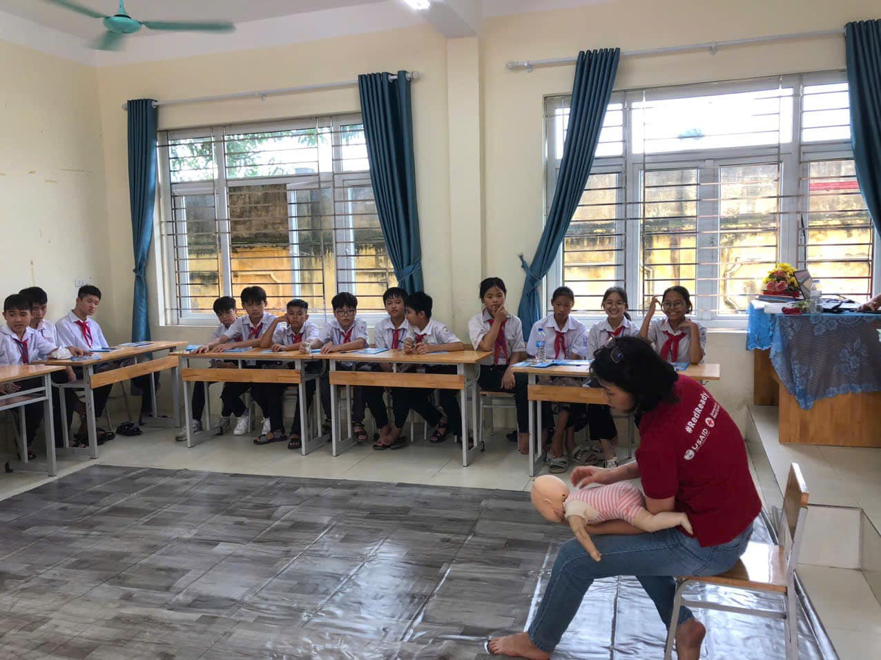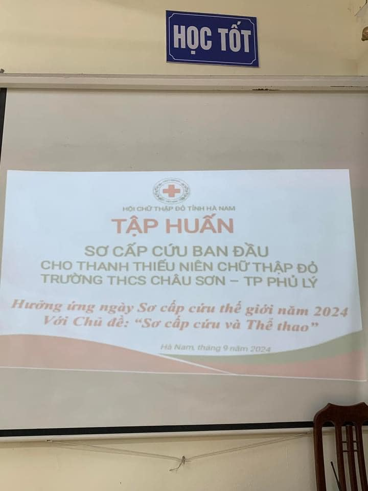 Ngày 18/9/2024 tại trường THCS Châu Sơn cùng với phòng giáo dục đã phối hợp với Hội Chữ thập đỏ thành phố Phủ Lý, Hội chữ thập đỏ tỉnh Hà Nam tổ chức tập huấn sơ cấp cứu ban đầu cho 30 học sinh đại diện cho 900 học sinh trong nhà trường với chủ đề “Sơ cấp cứu và Thể thao”.