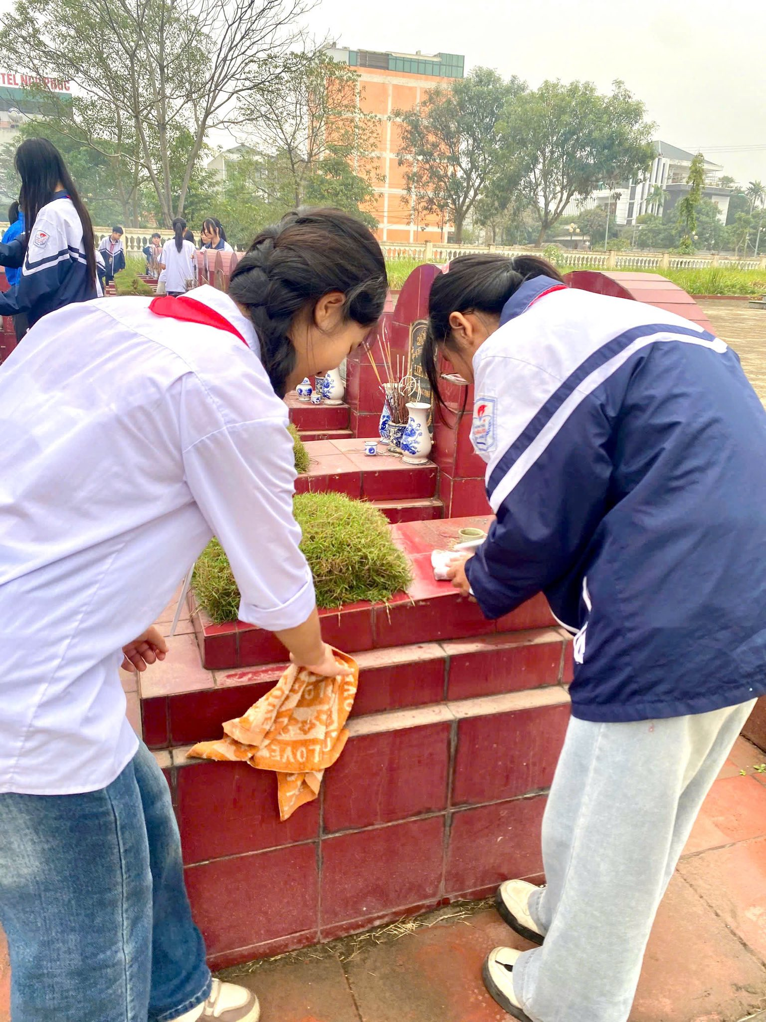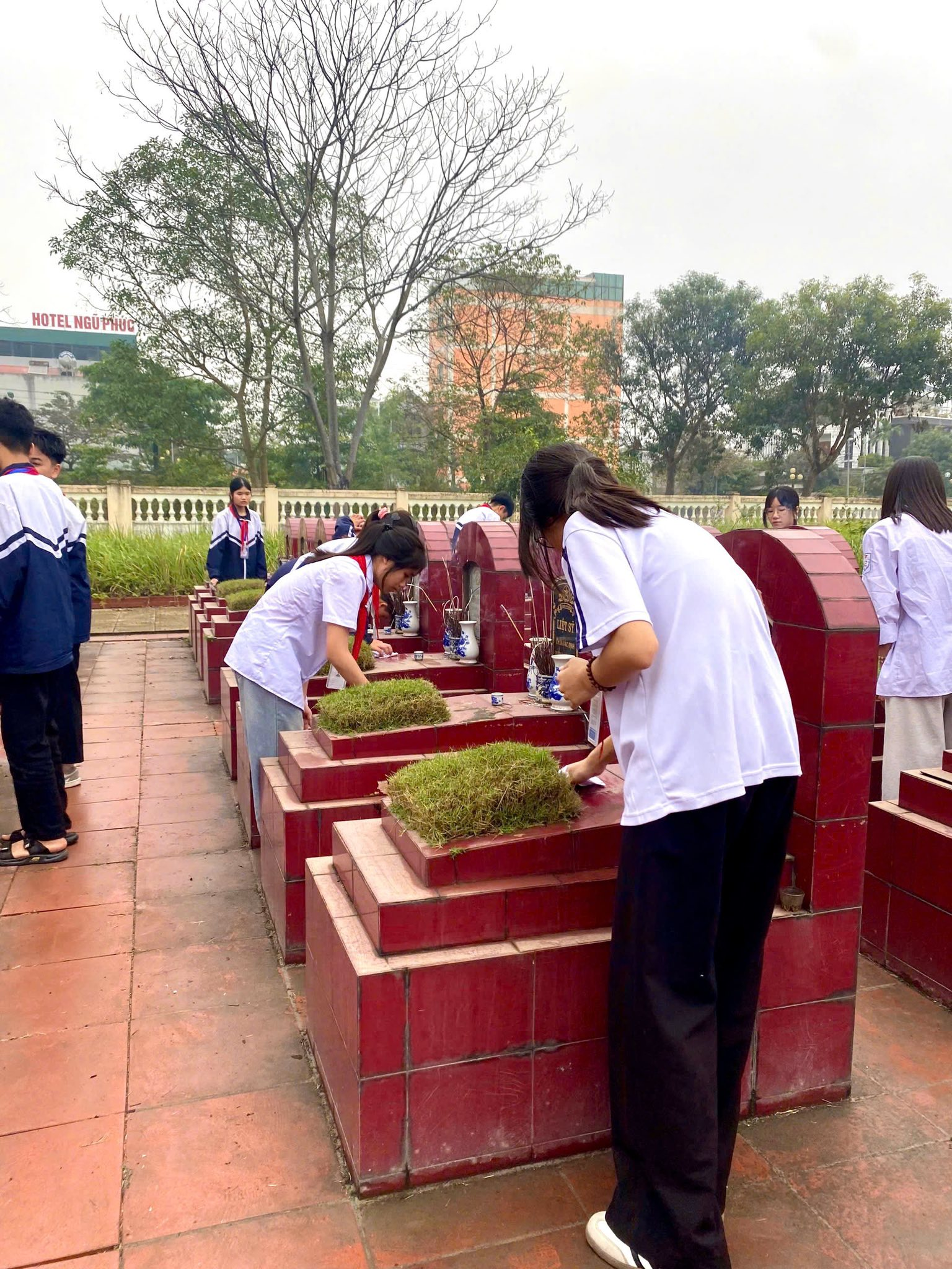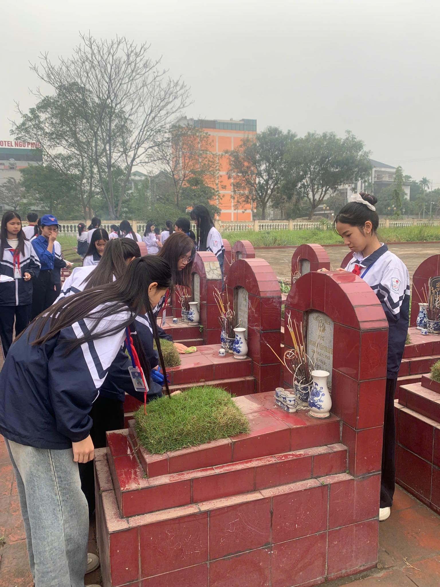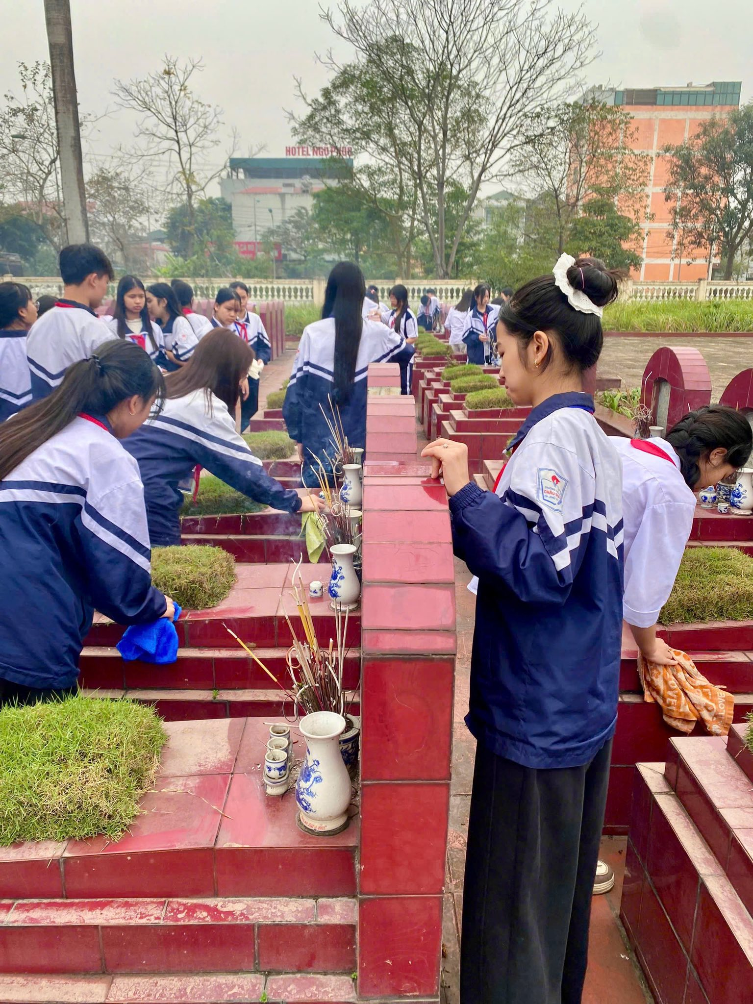 Thực hiện kế hoạch phối hợp của địa phương, ĐOÀN THANH NIÊN – ĐỘI TNTP trường THCS Châu Sơn tham gia tổng dọn vệ sinh, chăm sóc cảnh quan và thắp hương tại các nghĩa trang liệt sĩ trên địa bàn phường nhân dịp Tết Nguyên đán Bính Ngọ 2026.